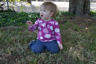 Her new word is "bye" and "byes" and "go bye" She says them all the time. I believe she knows what she is saying. Anytime Mike and I go to work, she promptly says bye. She also likes going "bye bye" now. We have taken her to the park a few times and she loves it. She loves running around and interacting with other kids. She is very social. She is always waving at everyone. She enjoys chasing the birds at the park and playing in the sand. And she loves the swing. The higher the better.
